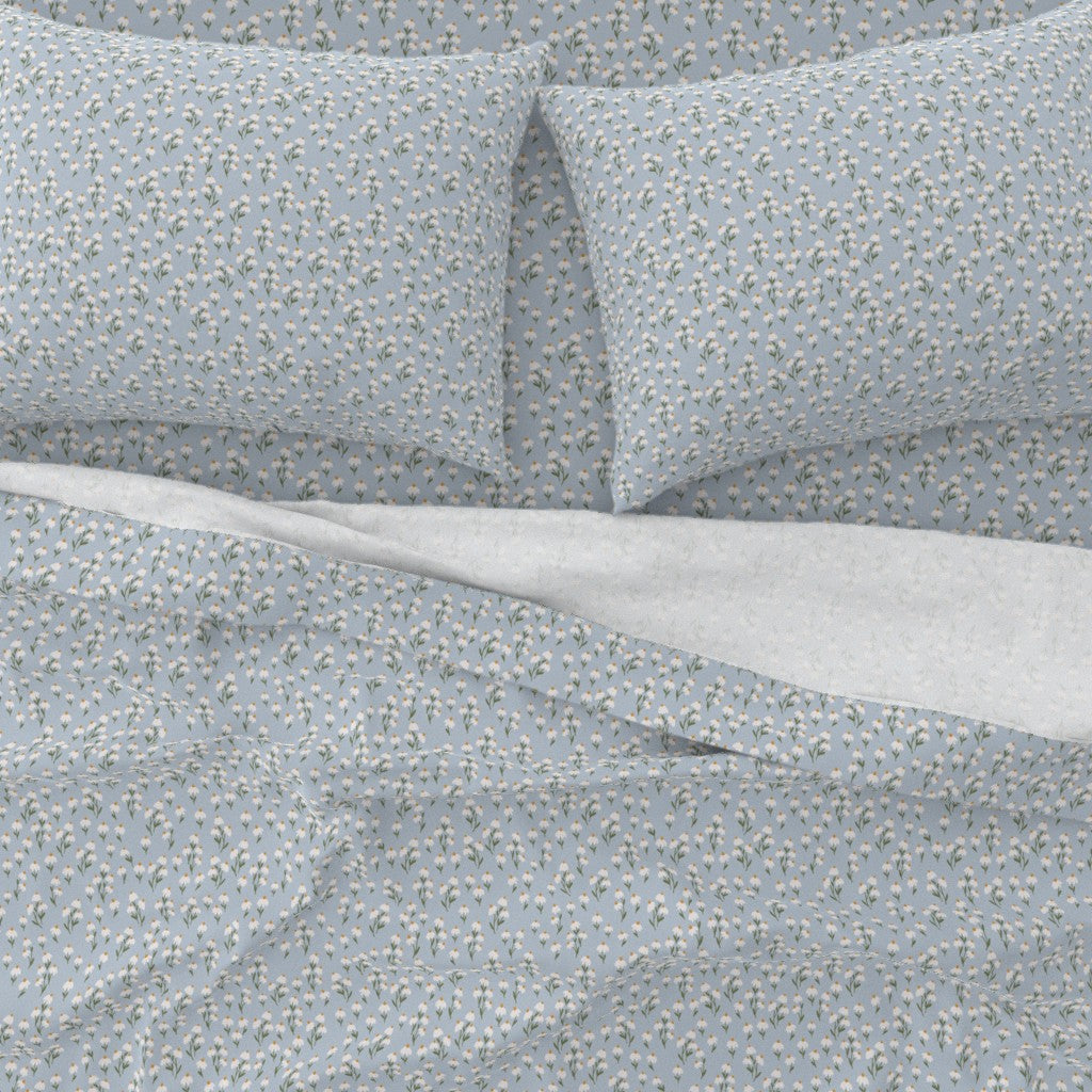 • Nostalgic white floral print on soft blue base