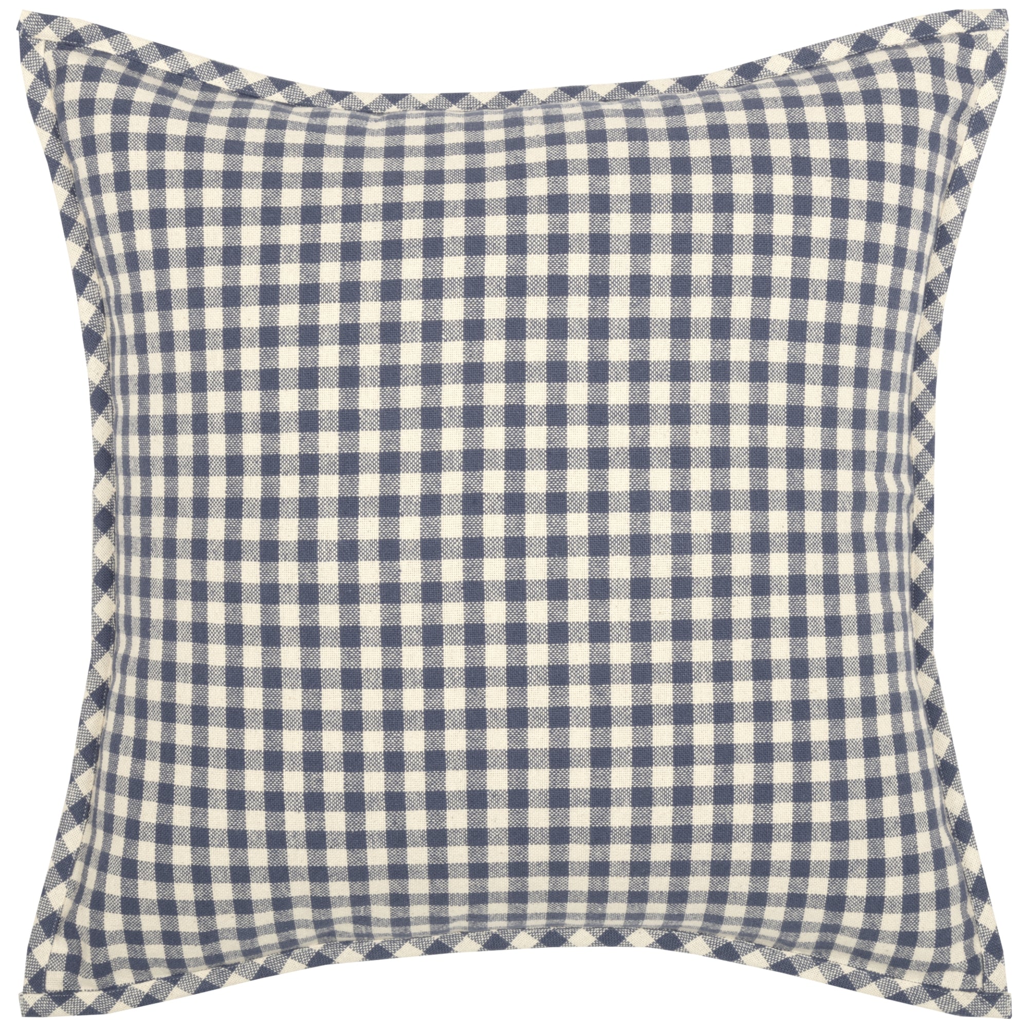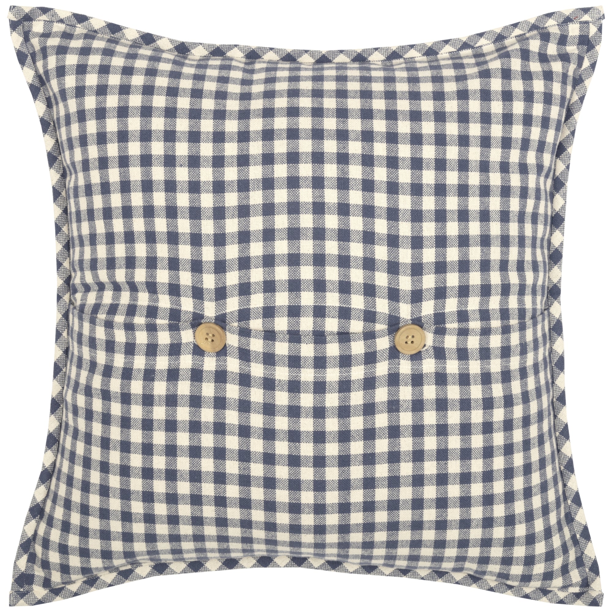 Classic denim blue and cream check pillow cover to accent the new Doylestown Quilt. Button closure on back. Made in India. Please note- This is a pillow cover only, the fill pillow is not included.